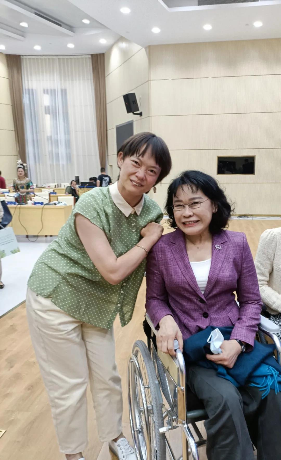 我们闲聊了几句,随着与会人员陆续进场,她落落大方地和诸位残联领导互致问候,合影留念。每次她的母亲都会默默地帮她拿起手机拍照,然后默默地将手机放到女儿的腿上,帮她戴好口罩。直到美国驻华使馆对外合作与发展处的工作人员入场,残联安排我们与之交谈,我才知道她的英文口语了得。