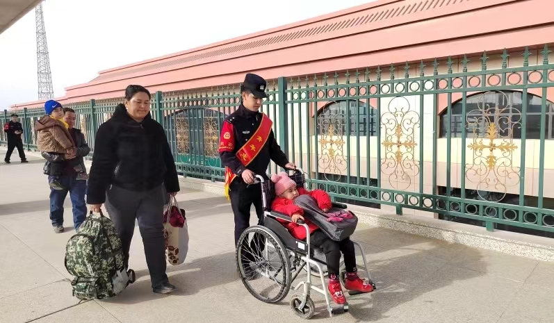 1月28日下午,策勒县残联在策勒县火车站大厅为该县8名残疾儿童及监护人举办前往新疆长安中医脑病医院接受免费援助康复治疗的欢送仪式。
