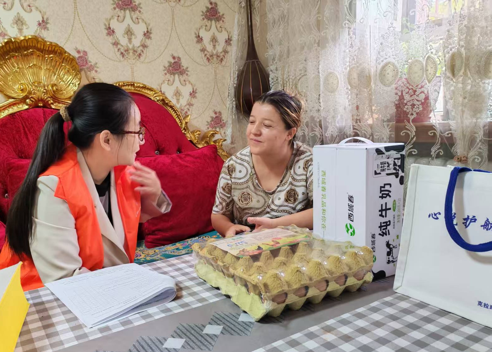 慰问中,协会工作人员送上牛奶、鸡蛋等生活必需品,提供专业健康服务与心灵慰藉,细致为服务对象及家属测量血压、血糖,依据结果给予个性化健康指导。在一户家庭,工作人员及时发现服务对象血糖异常,当即建议其就医检查,专业干预为家庭排除健康隐患。