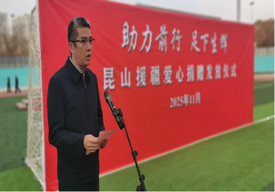阿图什市委副书记、昆山援疆工作组组长李铭在致辞中表示,此次捐赠旨在传递爱心与关怀,助力阿图什强化残疾人生活保障、推动女足事业进步。他强调,昆山与阿图什虽相隔千里,却情谊深厚、亲如一家,工作组将持续发挥桥梁纽带作用,为阿图什市高质量发展贡献更多昆山力量。