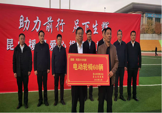现场,工作组向阿图什市残联捐赠60辆电动轮椅,将切实改善受助残疾人出行困境,为他们的生活增添便利与希望;同时向市妇联女子足球训练项目捐赠10万元,为女足事业发展提供资金支持。