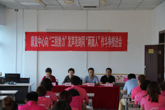 图为康复中心召开向“三股势力”发声亮剑、同干部队伍中的“两面人”作斗争推进会