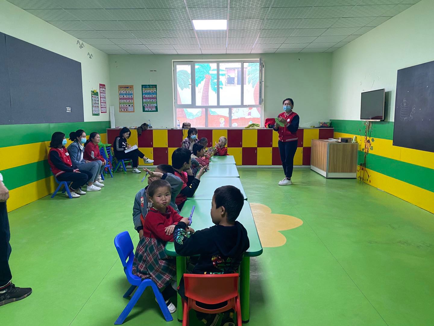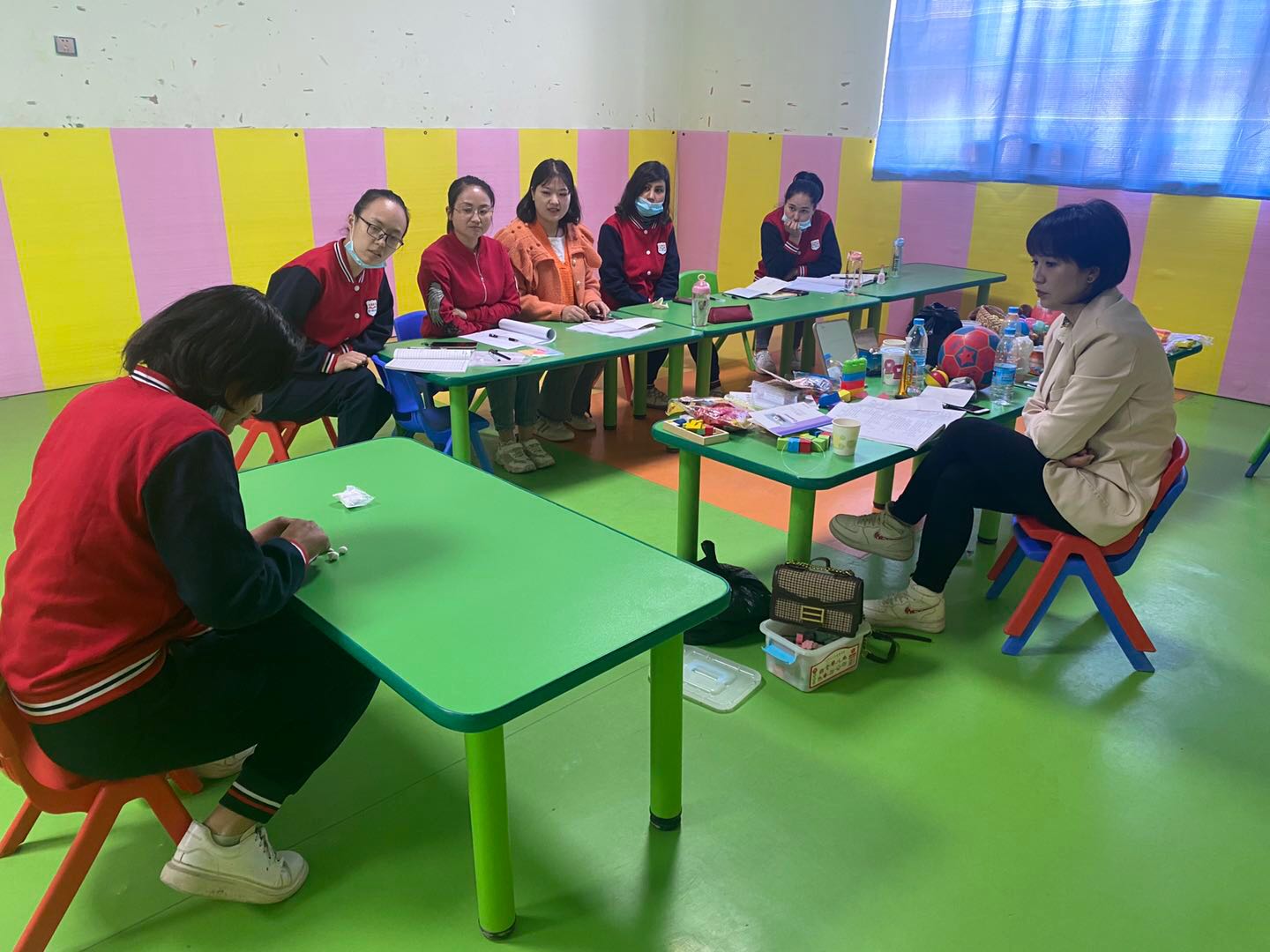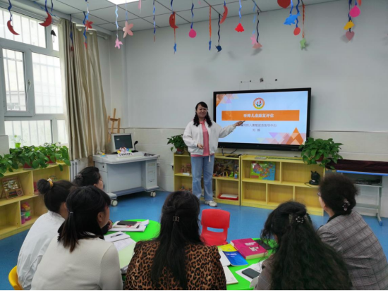 图为听力语言康复指导小分队正在进行听觉口语法中首次评估和五大领域教学实操考核