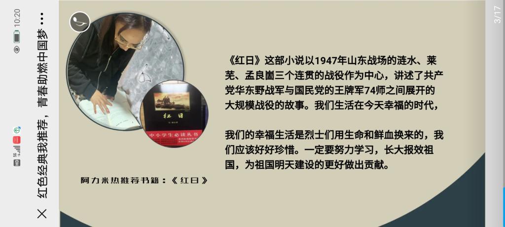 4月23日是“世界读书日”。为了加深康复中心青年教职工对共产党百年党史的认知,传承红色精神,营造全中心青年教职工热爱阅读氛围,坚定文化自信,号召全体青年教职工向党组织靠拢,在五四青年节来临之际,4月23日新疆残疾人康复服务指导中心青年工作委员会开展“红色经典我推荐,青春助燃中国梦”好书推荐沙龙活动。