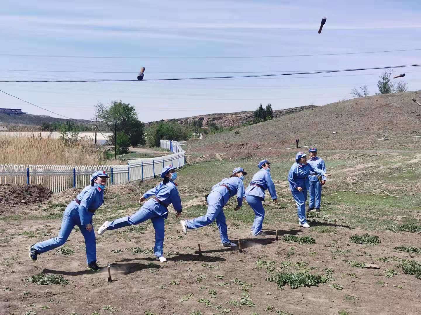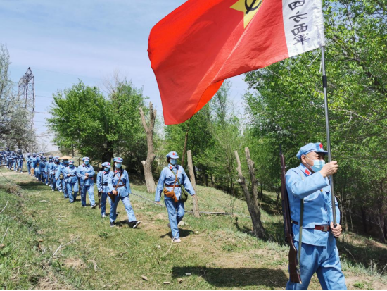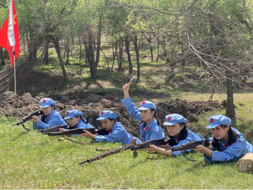 临近中午,在教官的带领下,全体职工扛起党旗、背着枪支弹药继续前进,重走长征路。大家出发来到了林间深处,一起拾柴搭锅做饭,感受革命战争年代自己丰衣足食。饭后,大家跟着教官来到了红军学校,一起学唱红歌,讲革命故事,投掷手榴弹,最后在宝塔山下胜利会师。虽然只有短短几个小时,却让大家更加深刻的感受到了红军战士的艰苦,大家纷纷表示要发扬红军不怕苦,不怕累的革命精神,走好新时代的长征路。