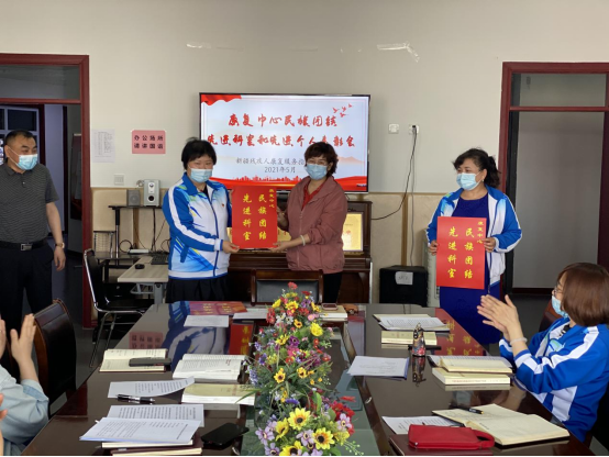 图为吕萍书记为民族团结先进科室颁发荣誉牌