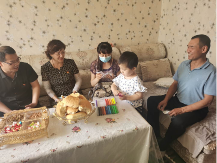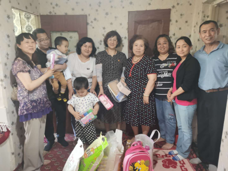 党史学习教育始于心,践于行。新疆残疾人康复服务指导中心党支部在党史学习教育中,坚持学用贯通,做实做深“我为群众办实事”实践活动,联合自治区生殖健康医院(自治区第八人民医院)四个党支部共同开展“党史学习践于行, 真心助残暖人心”爱心慰问活动。6月16日,康复中心书记吕萍、主任朱禾、中心党员志愿者代表和自治区生殖健康医院党委委员、副院长王志宏及党员志愿者们共同走入三户孤独症、智力障碍儿童家庭,解答家长康复训练过程中的疑惑,了解儿童康复情况,并为孩子们送上慰问品。