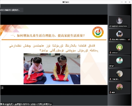 “如何提高孤独症智力障碍儿童生活自理能力,提高家庭生活质量?”“如何鼓励引导孤独症和智力障碍儿童帮助别人,增加互动机会?”“如何理解为什么孤独症智力障碍孩子的行为很特别?”9月23日,康复中心组织孤独症和智力障碍专业技术人员使用“腾讯会议云课堂”,面向阿克苏地区开展了“第一期少数民族孤独症和智力障碍儿童家长阿克苏地区专场网络培训”,21个少数民族孤独症和智力障碍儿童家庭参加了此次培训。