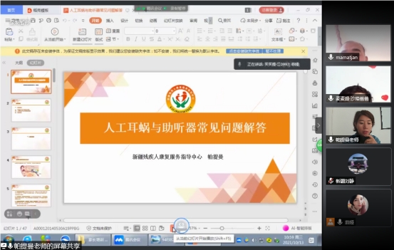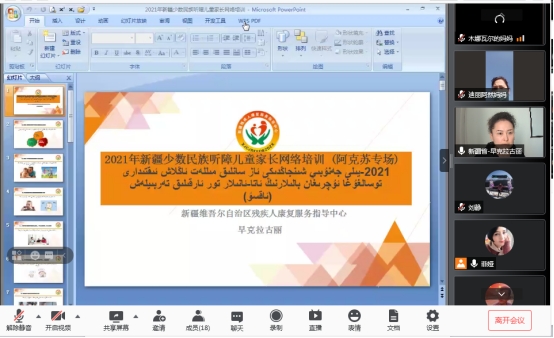 图为康复中心听力语言康复科科帕提曼老师正在给阿克苏地区的听障儿童家长进行网络培训