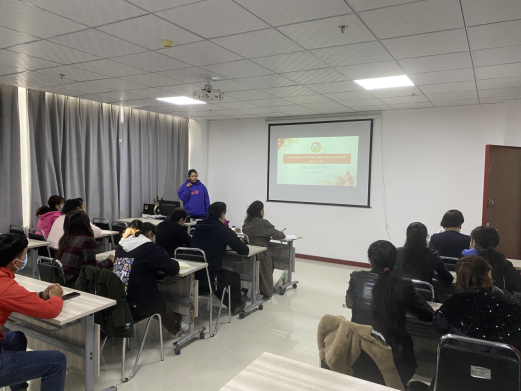 图为康复中心听力语言康复科地力努尔老师在给家长们讲授听力学知识