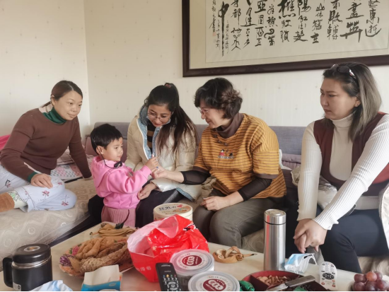 当大家相见时,双方如同久未见面异常高兴,小亲戚赛比热尤如见到妈妈般亲热,直接拥入钟亚男老师怀中送上小拥抱,大家欢喜之声问候之语不绝于耳,手拉着手说不完的贴心话。赛比热妈妈不断嘱咐钟亚男老师,要注意休息,千万不要再碰到伤口,小赛比热仿佛也了解到了老师妈妈的情况,贴心的坐在想念已久的钟老师妈妈身边,安静的依靠着老师妈妈,画面温馨幸福。钟亚男老师也不断的叮嘱着赛比热妈妈注意冬季保暖和交通安全,也希望自己的这个可爱的“小女儿”能够坚持康复尽快融入社会,能够用清晰的语言与大家沟通!同时,钟亚男老师也递上了自己托家人提前准备好送给赛比热的礼物,各种玩具、水果、零食让小赛比热开心不已,不停地拍手并在老师的指导下说着“谢——谢”!