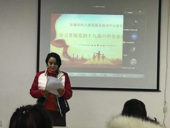 12月10日上午,自治区残联康复中心家长学校在正??吻?,由党员祖力皮艳木老师为当天参加培训的家长做了宣讲。前期,康复中心党支部书记吕萍认真准备了宣讲内容,党支部又根据家长主要来自南北疆基层的维吾尔族等少数民族人员的特殊情况,特别安排康复中心的维吾尔族女党员祖力皮艳木老师对宣讲内容进行预先熟悉,比对新疆维吾尔语言新闻播报的用词用语进行了一句一句准确翻译,然后面对家长们进行了《党的十九届六中全会精神》宣讲,内容包括中国共产党十九届六中全会审议通过的两个决议、百年党史“四个历史时期”的伟大成就、百年奋斗带来的巨大变革、党提出的“十个坚持”的历史经验、明确指出的“两个确立”的重大政治成果,都是党领导人民艰辛探索、接续奋斗的理论和实践的科学总结,我们必须倍加珍惜,毫不动摇坚持,与时俱进发展。