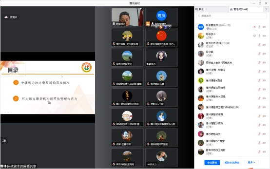 3月7日-18日,自治区残疾人康复服务指导中心面向全疆基层听力语言康复机构连续举办了两期“2022年自治区听力言语残疾康复专业技术人员规范化培训(网络)培训班”,主要内容为听障儿童听觉口语教学技能培训,全区10个地(州、市)听障儿童康复救助定点服务机构中的65名康复教师在线上参加了此次培训。