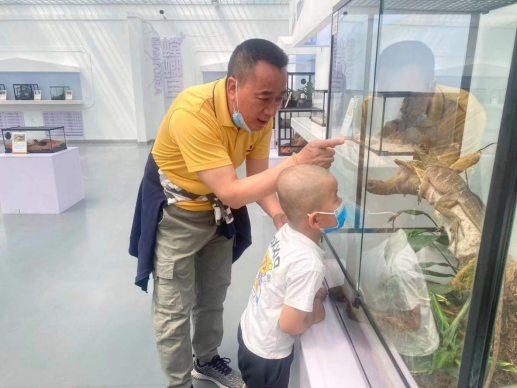 参展过程中,全体人员在讲解员带领下参观标本展示区和活体昆虫展示区,在“看、学、玩、动”中,观察、了解近180种昆虫和爬行动物的生活习性?!霸辞嗤苁怯泻芏嗥分值?,青蛙还有牙齿,不能随便摸”,“还有那么多品种的甲虫,每种昆虫都有自己的生活习性”,家长们一边参观一边感叹,孩子们也睁大了眼睛,好奇的抚摸每一种昆虫,与昆虫们来了一次近距离接触;可爱的智力障碍小朋友西西还学着小乌龟的步伐,慢吞吞的围着它爬行,逗得全场欢笑连连。