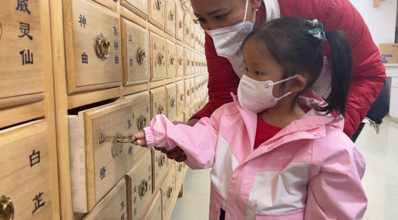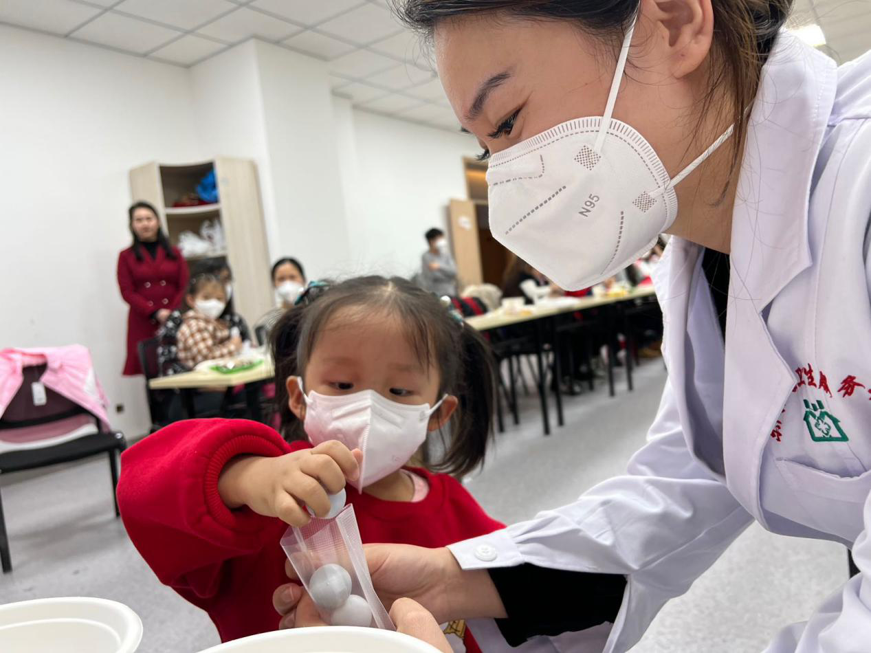接着,在卫生服务中心中医馆“甘草叔叔”的带领下,残疾儿童开展了一次刺激有趣的寻宝小游戏。在老师们的帮助下,孩子们化身小侦探积极寻宝,不一会儿的功夫就找到了药箱里藏着的宝贝——中药香囊。孩子们在玩中学,了解了焦山楂、焦神曲及焦麦芽的作用和功效,家长们也知道了针对小儿食欲不振的中药配方。孤独症儿童丫丫在找到宝贝后,把它挂在了自己的背的小书包上,骄傲的向所有人展示自己的战绩!