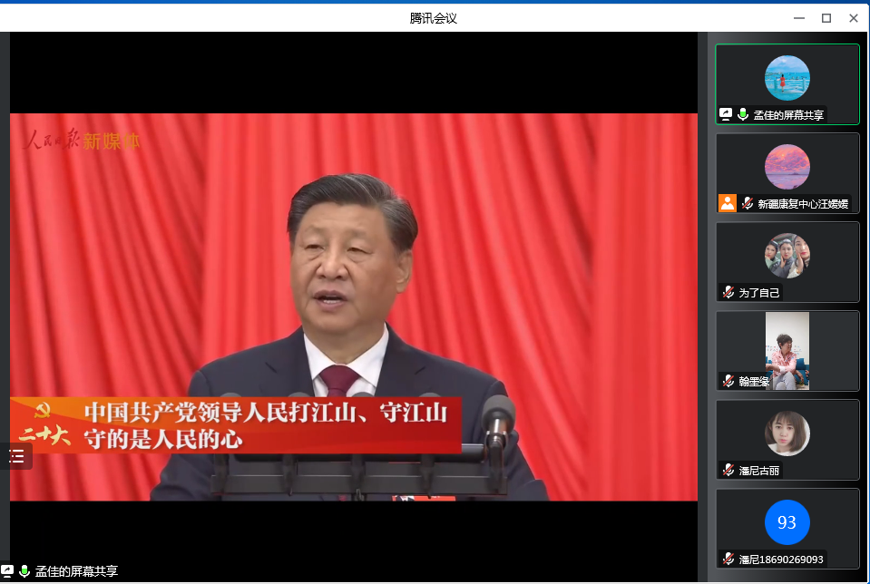 为深入贯彻落实党的二十大精神和习近平总书记视察新疆重要讲话指示精神,贯彻落实自治区党委十届五次、六次全会精神,进一步铸牢中心教职工与在训各族残疾儿童家长的中华民族共同体意识,1月13日上午,新疆残疾人康复服务指导中心开展线上“2023年元旦春节民族团结一家亲宣讲活动”,中心全体教职工及在训各族残疾儿童家长相聚云端,共同学习。