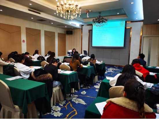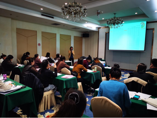 图为自治区残联康复中心汪媛媛老师在培训班上授课