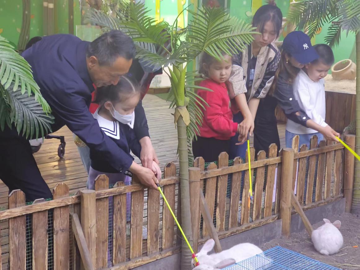 在bobozoo室内动物园工作人员的带领下,孩子们充满好奇的走进了神秘的动物王国,与300多只小动物亲密接触??蹈粗行闹魅伟嵬叨膛惆樽约旱慕岫郧灼荨φ习髅鳎ɑ┕凵透髦中《?,在他亲切的讲解下,明明(化名)知道了每个人不仅要喜欢小动物,更要?;ぁに?,?;に抢狄陨娴幕肪?;孤独症儿童小茹(化名)一手牵着妈妈,一手牵着自己的结对亲戚——康复中心副主任志晓军,一会儿看看萌萌的羊驼,一会儿看看长着“黑眼圈”的小浣熊,小小的脸上时时绽放着开心喜悦之情。孩子们在康复中心教师们爱心陪伴下、在家长们的暖心呵护中,不断收获着憨态可掬的小动物们带来的欢乐,大家在一阵阵笑声中度过了快乐的时光。
