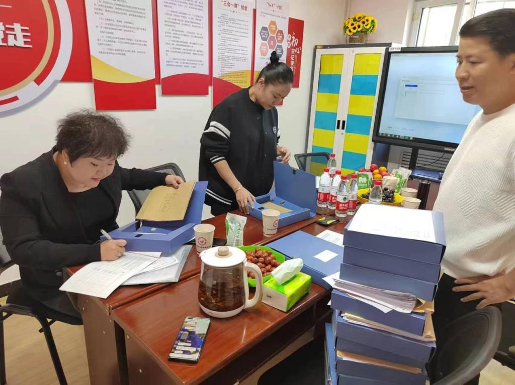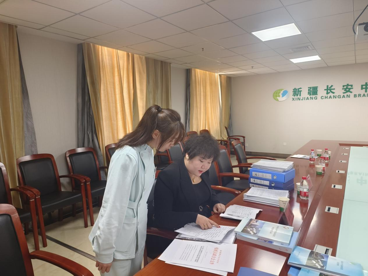 图为评估人员在长安中医脑病医院查阅康复档案