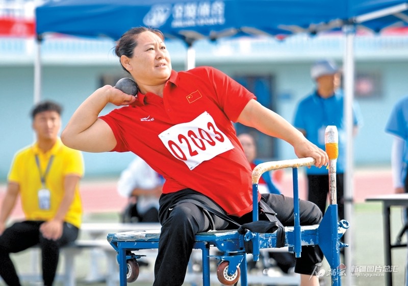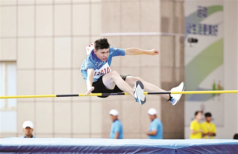 9月10日上午,自治区残特奥会田径比赛在巴音体育场进行男子F60跳高决赛。