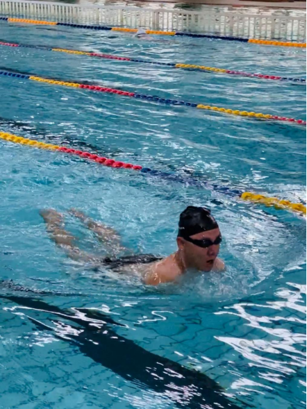 图为无臂青年(游泳运动员)褚长昊在训练中