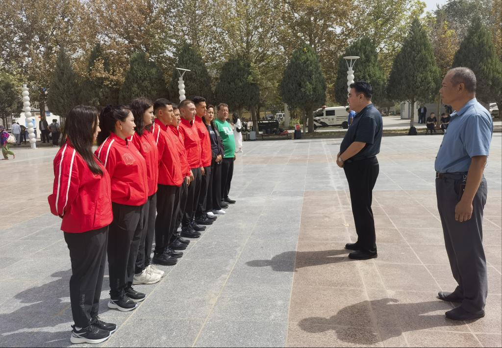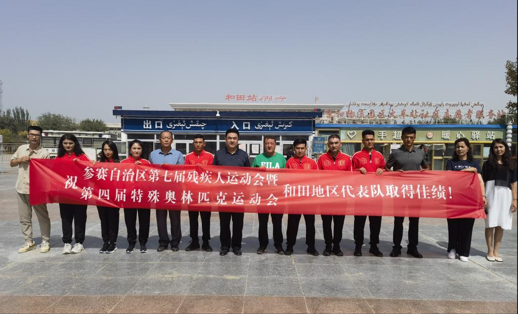 9月7日下午,参加自治区第七届残疾人运动会暨第四届特殊奥林匹克运动会的和田地区代表队在和田市火车站举行出征仪式。和田地区残联党组副书记、理事长莫合塔尔·买提努尔作出征动员讲话,宣布和田地区代表队正式出征。