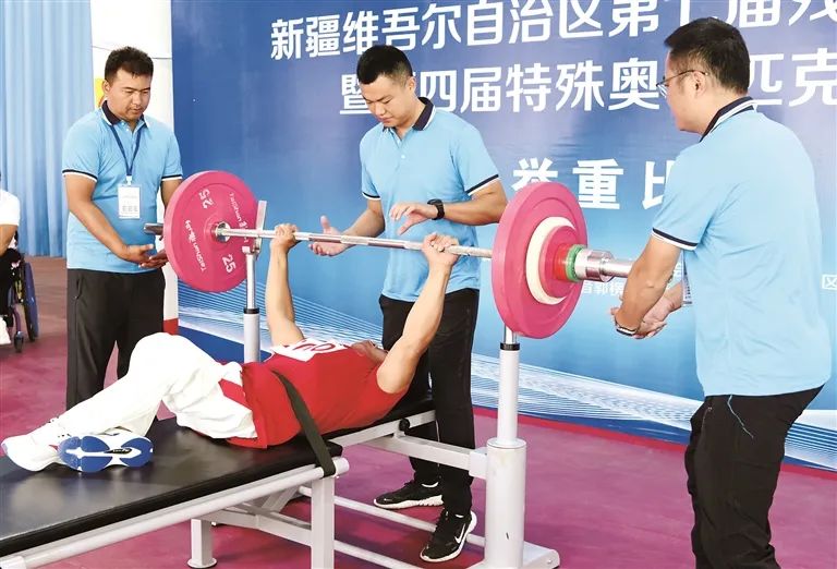 又讯 9月10日,自治区残特奥会举重比赛在库尔勒经济技术开发区康健体育馆举行。来自全疆10个地州的31名选手,将在为期两天的比赛中展开激烈角逐。
