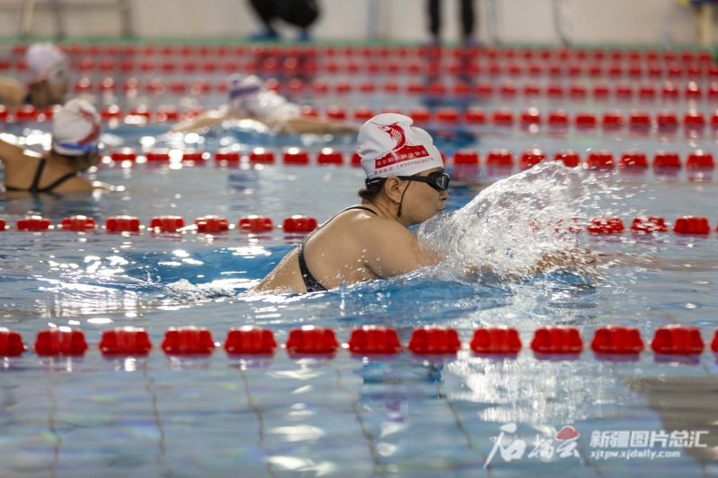 9月11日,王燕红在S6-9级女子100米蛙泳的比赛中,坚持完赛获得第三名。石榴云/新疆日报记者 唐堪东摄