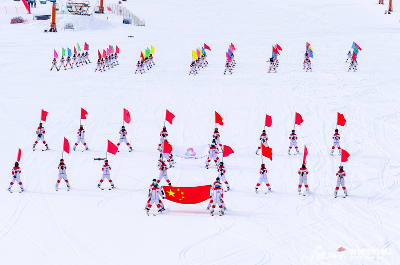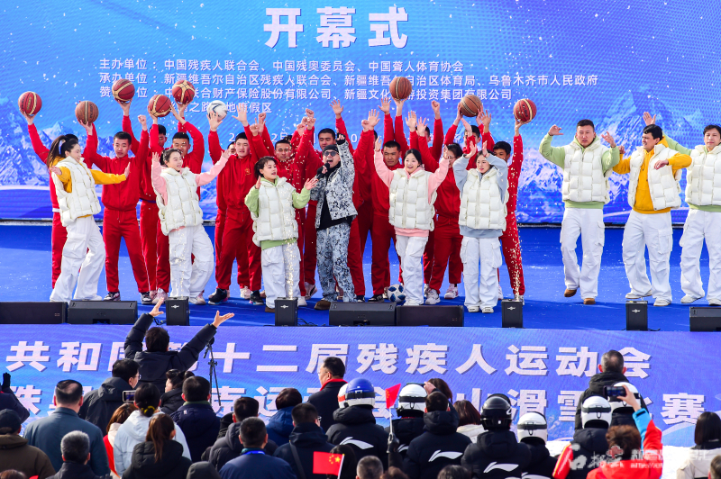 开幕式上,滑雪运动员滑降送旗,鲜艳的国旗与会旗飘扬在雪场,奏唱国歌仪式庄严神圣 。随后,精彩的滑降表演展现了冰雪运动的魅力。文艺表演将新疆特色与残健融合理念巧妙结合,少年合唱团、情景剧、民族联舞等节目,赢得阵阵掌声。