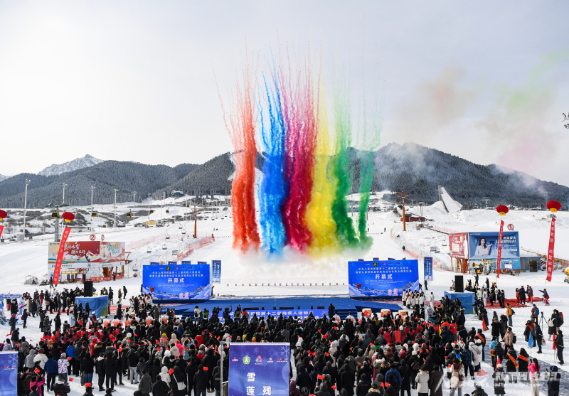 3月5日,全国第十二届残疾人运动会暨第九届特殊奥林匹克运动会高山滑雪比赛在乌鲁木齐县丝绸之路山地度假区盛大开幕。图为开幕式现场。石榴云/新疆日报记者 周鹏摄